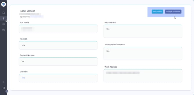 Some or all templates for your organisation may populate your contact information as a consultant. Ensure these details are correct by accessing the Profile section from the left-side menu. You can also change your password here.