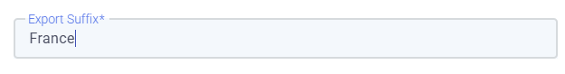 - Locate Export Suffix in the right panel. Enter the suffix text you want applied to all exports with this template. Keep it short and consistent (e.g., your brand, geography, or language code: ABC Company, France, BE).