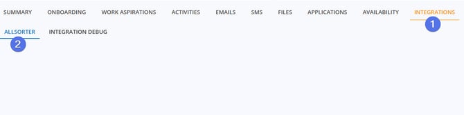 - Inside the candidate’s profile, go to the ‘Integrations’ tab above the main frame.