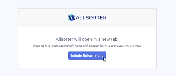- On the Allsorter page, click ‘Initiate Reformatting.’ This action will open Allsorter in a new tab.