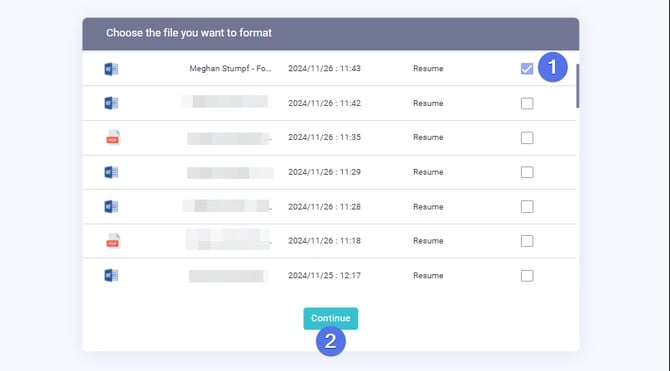 - Choose the candidate whose resume you want to work on from the Candidate List dashboard.